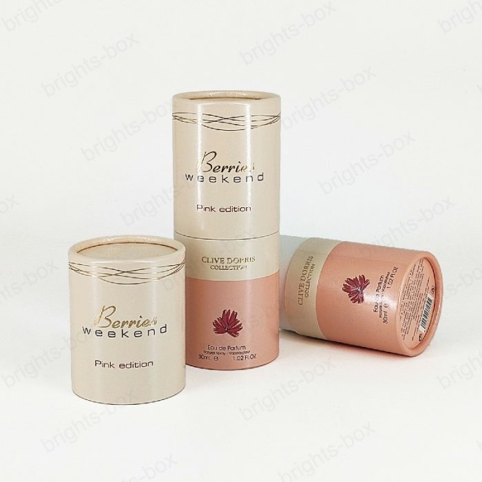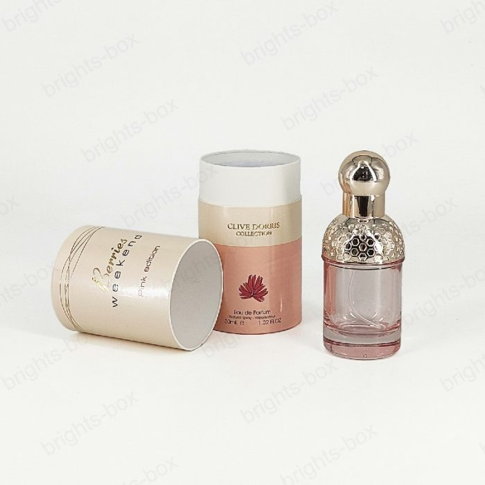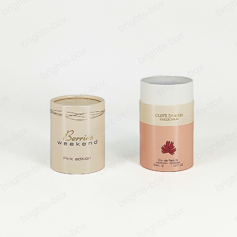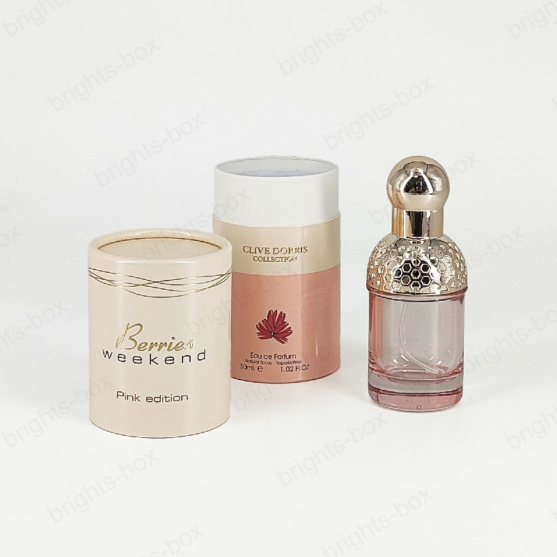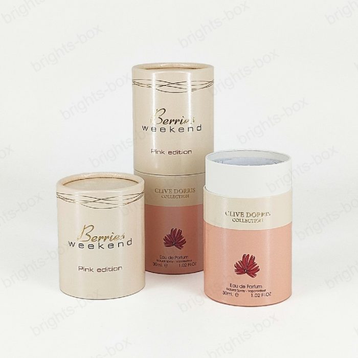 Cylinder box Chinese manufacturer Perfume Paper packaging Gold Hot stamping drip Varnishing glitter