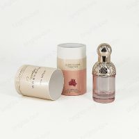 This is a cylinder perfume box, the whole body surface covered with a layer of Coated paper, while using CMYK printing. This box uses drip varnish, which not only carries a metallic texture, but also has some glitter that shimmers in the sunlight, logo and pattern with hot stamping process, more luxury.