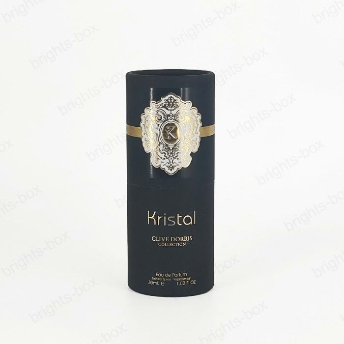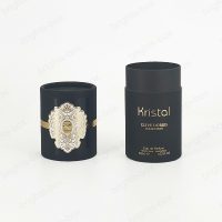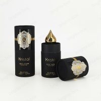This is a cylinder perfume box, the whole body surface covered with a layer of Black soft touch paper, while using CMYK printing, The box is soft to the touch and looks very understated luxury. This box is suitable for men’s fragrances and looks simple and understated, with just the right amount of luxury revealed in the patterned center.