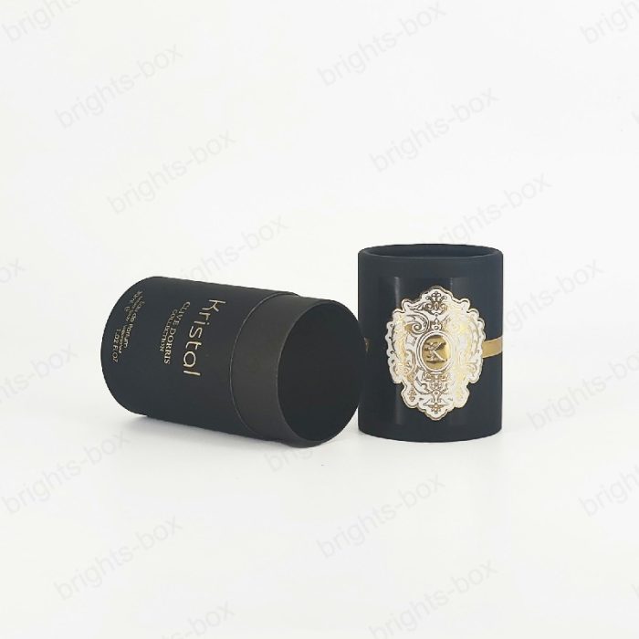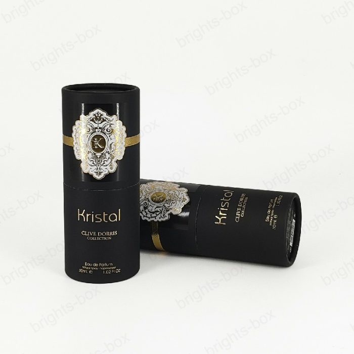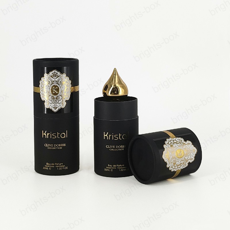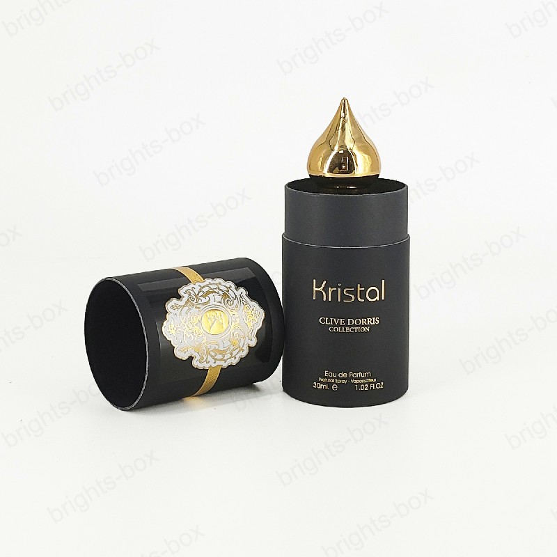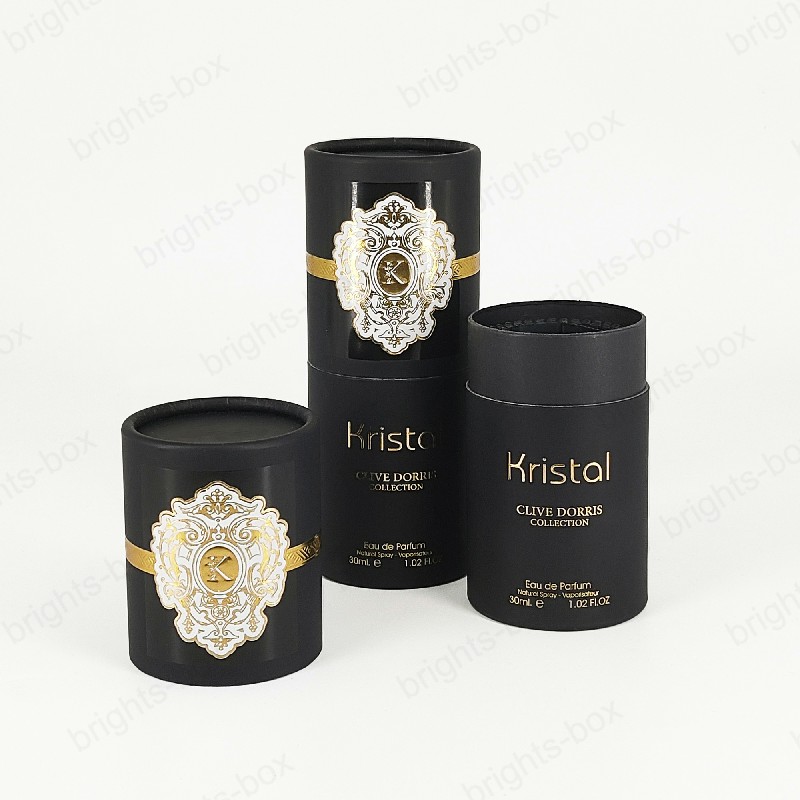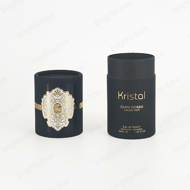 Cylinder box Chinese manufacturer Perfume Paper packaging Gold Hot stamping Glossy Varnishing Sticker