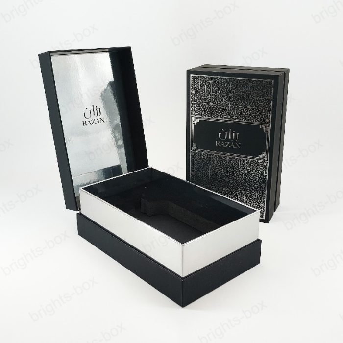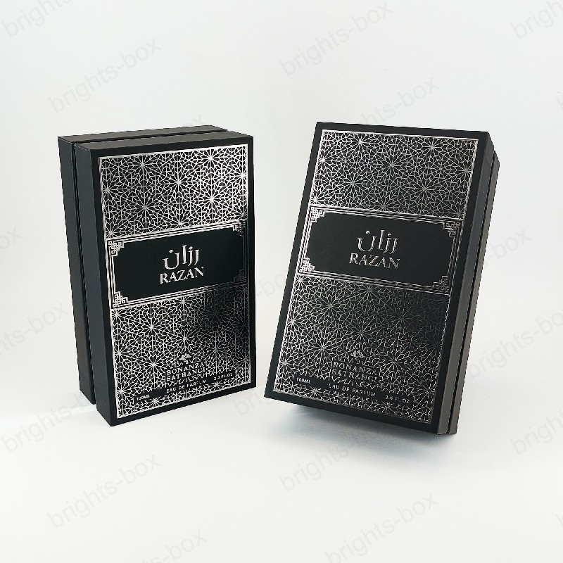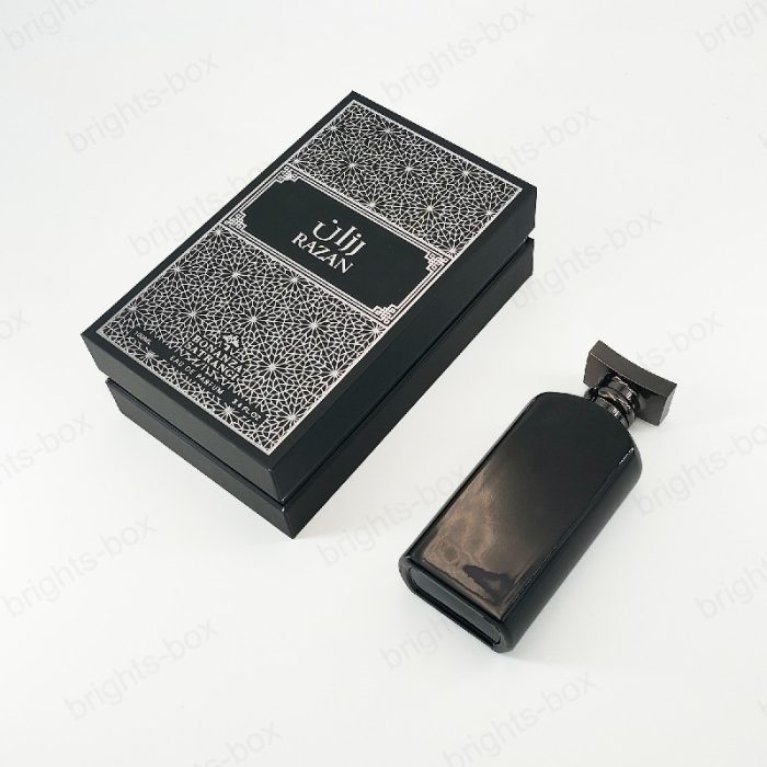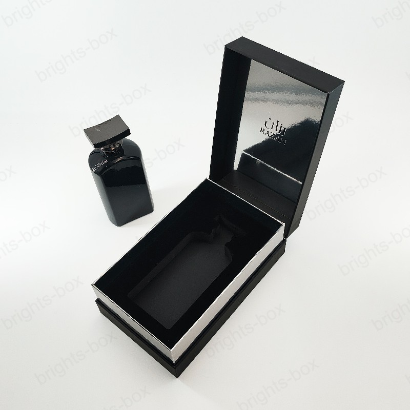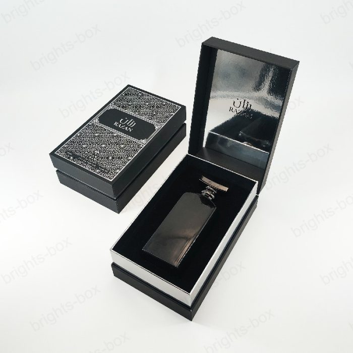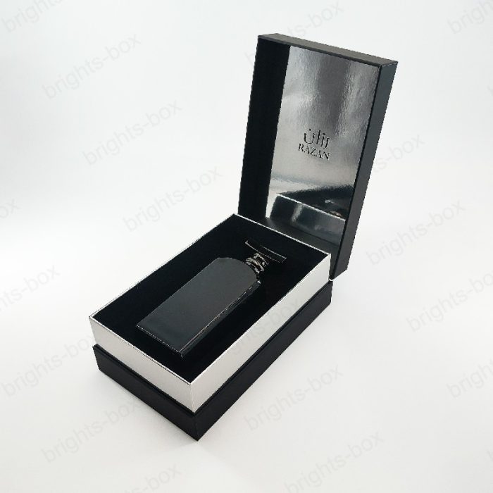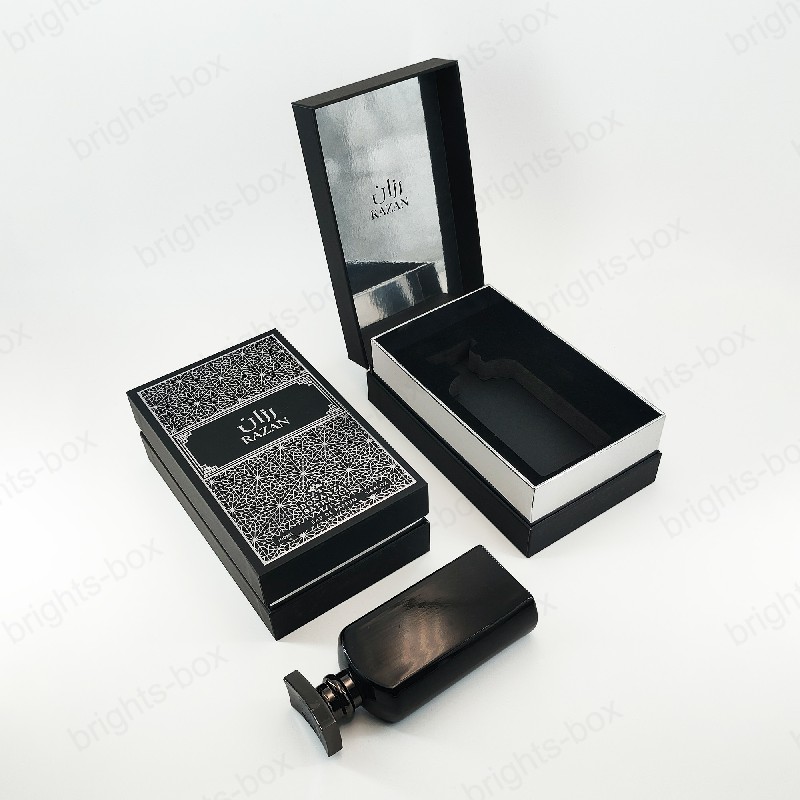 Luxury Rigid box Chinese manufacturer Perfume Paper packaging Silver Hot stamping Embossing UV Soft Touch