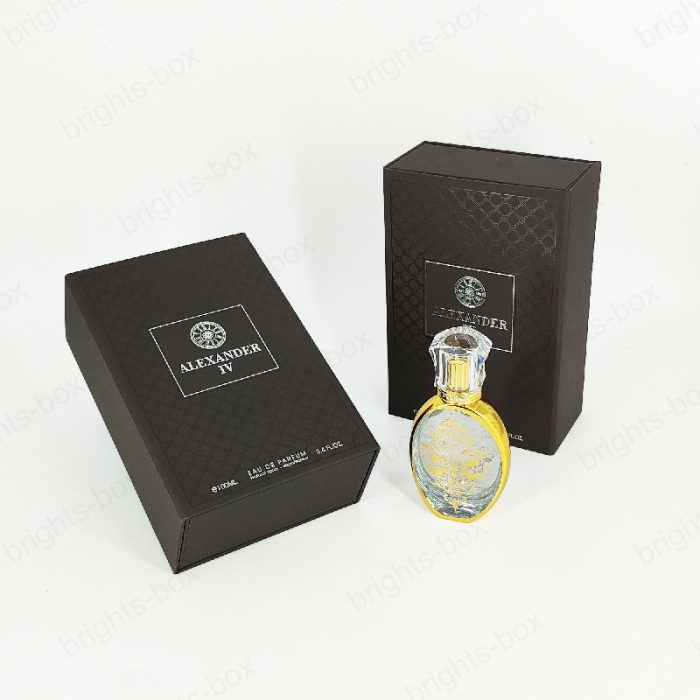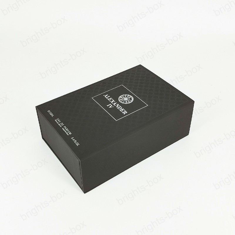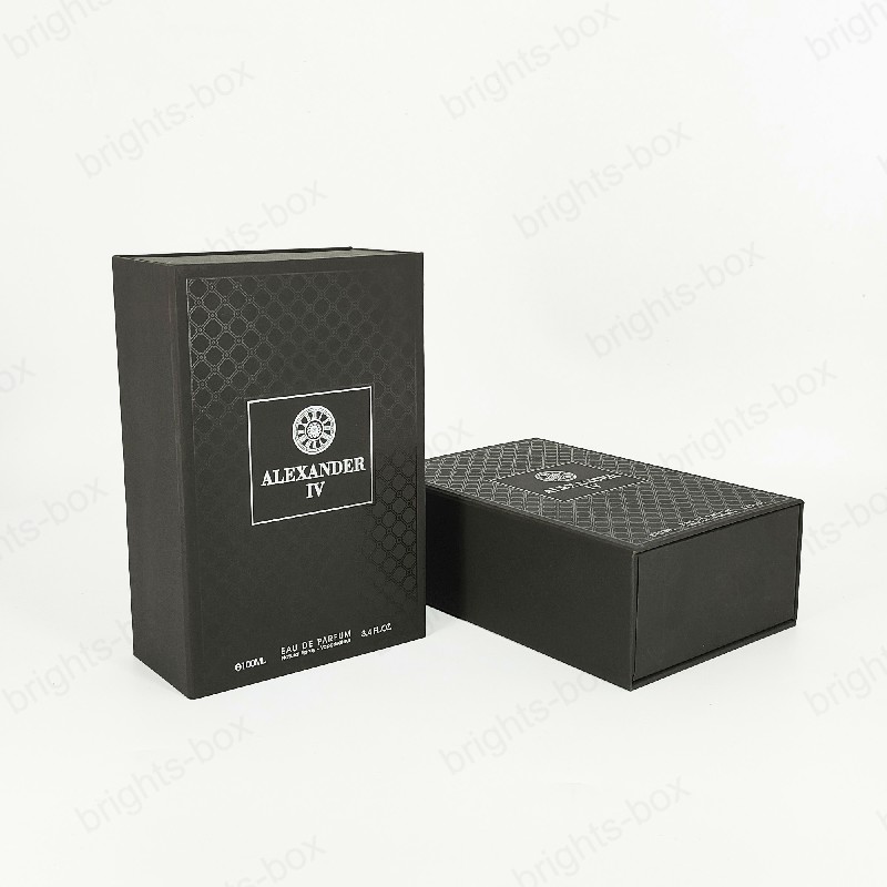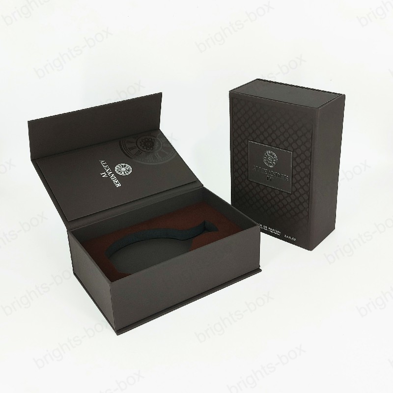 Rigid box Chinese manufacturer Perfume Paper packaging Silver Hot stamping Embossing UV Soft Touch