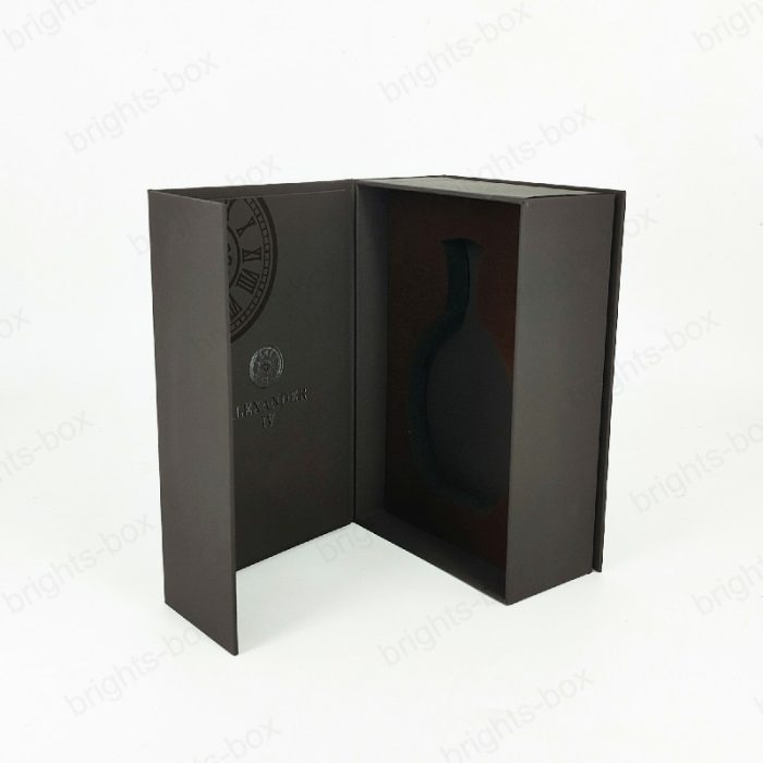If you are searching for sustainable packaging, this box example may be your perfect fit. This box can hold a relatively large capacity of perfume, usually printed with a special embossed special paper for packaging, the front side is UV printed with a floral pattern and the name of the perfume is stamped in silver, which is very understated and luxurious.
